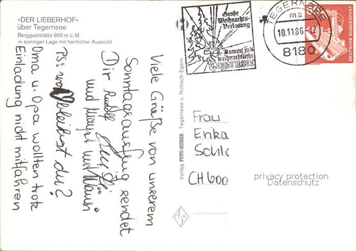 72476619 alte Postkarte Tegernsee Bayern Panorama Berggaststaette Der Lieberhof postalisch gelaufen Erhaltung siehe scans KatCode: 11110009182132