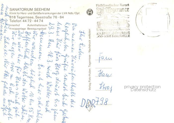 73758535 Tegernsee Bayern Sanatorium Seeheim Innenhof Foyer Hallenbad Wassertretanlage postalisch gelaufen Erhaltung siehe scans [FriedD77] alte Postkarte Frie Katcode 11110009182132
