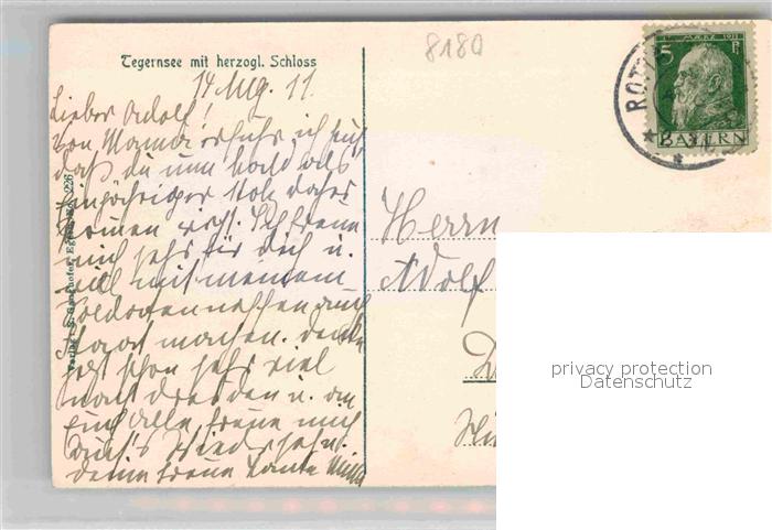 42827856 alte Postkarte Tegernsee Bayern Schloss postalisch gelaufen Erhaltung siehe scans [AndreD76] KatCode: 11110009182132