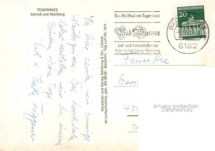 72839515 alte Postkarte Tegernsee Bayern Schloss Wallberg postalisch gelaufen Erhaltung siehe scans [AndreD76] KatCode: 11110009182132