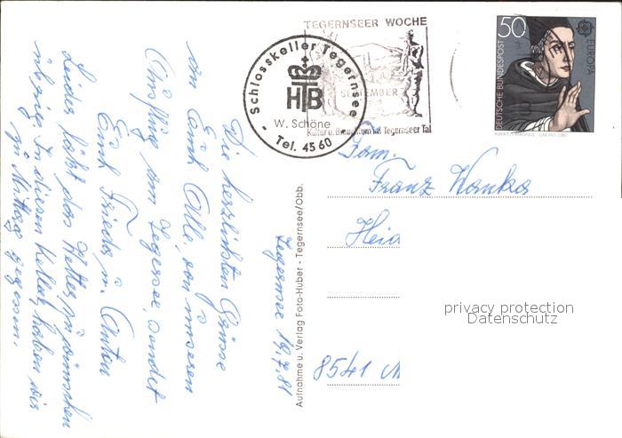 72109523 alte Postkarte Tegernsee Bayern Schlosskeller postalisch gelaufen Erhaltung siehe scans KatCode: 11110009182132