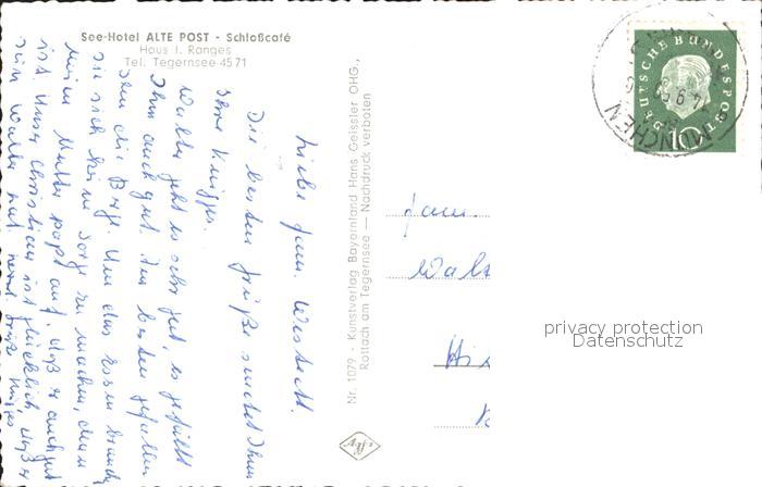72197656 alte Postkarte Tegernsee Bayern See- Hotel Alte Post- SchlossCafe postalisch gelaufen Erhaltung siehe scans KatCode: 11110009182132
