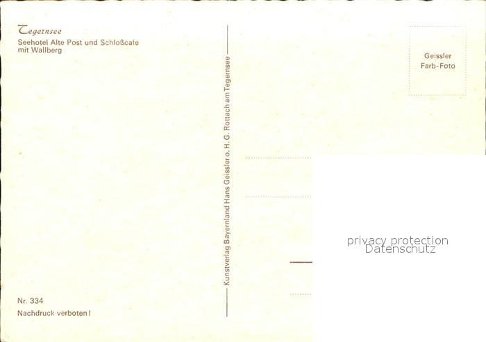 72610569 Tegernsee Bayern Seehotel Alte Post mit Wallberg postalisch nicht gelaufen Erhaltung siehe scans [AndreD76] KatCode: 11110009182132