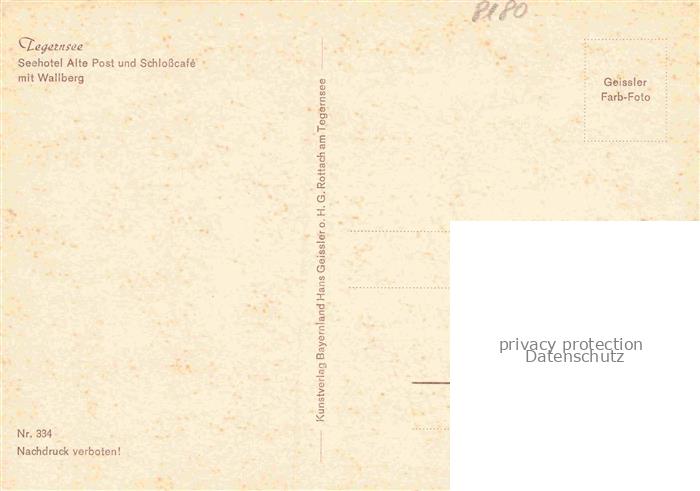 74132345 Tegernsee Bayern Seehotel Alte Post und Schlosscafé mit Wallberg postalisch nicht gelaufen Erhaltung siehe scans [FriedD77] Frie Katcode 11110009182132