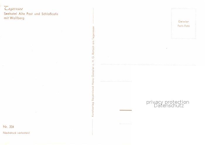 72626599 Tegernsee Bayern Seehotel Alte Post und Schlosscafe mit Wallberg Bayerische Voralpen postalisch nicht gelaufen Erhaltung siehe scans [FriedD77] KatCode: 11110009182132