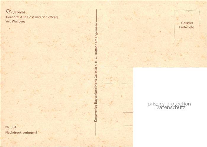72840667 Tegernsee Bayern Seehotel Alte Post und Schlosscafe mit Wallberg Mangfallgebirge postalisch nicht gelaufen Erhaltung siehe scans [FriedD77] KatCode: 11110009182132