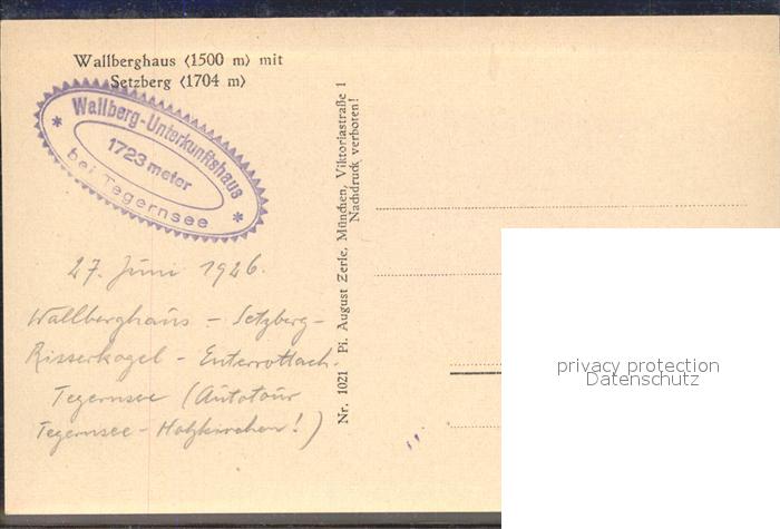 72142444 Tegernsee Bayern Wallberghaus Setzberg postalisch nicht gelaufen Erhaltung siehe scans KatCode: 11110009182132