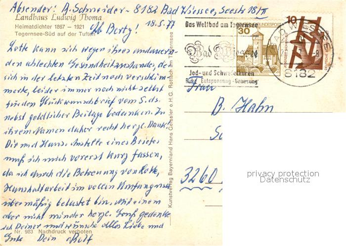 73095830 alte Postkarte Tegernsee Landhaus Ludwig Thoma postalisch gelaufen Erhaltung siehe scans [NatalD47] KatCode: 11110009182132