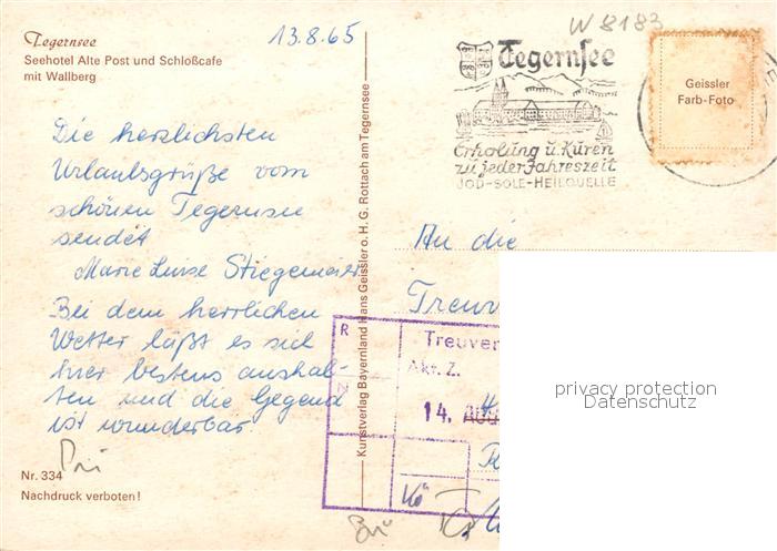 73120114 alte Postkarte Tegernsee Seehotel Alte Post Schlosscafe Wallberg postalisch gelaufen Erhaltung siehe scans [KathaD81] KatCode: 11110009182132