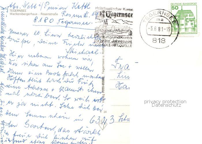 73152766 alte Postkarte Tegernsee Wackersbergerhaus postalisch gelaufen Erhaltung siehe scans [KathaD81] KatCode: 11110009182132