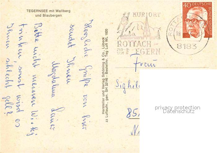 72864834 alte Postkarte Tegernsee Wallberg Blaubergen Fliegeraufnahme postalisch gelaufen Erhaltung siehe scans [NatalD47] KatCode: 11110009182132