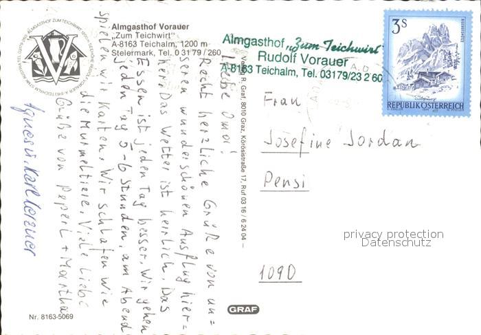 72375017 alte Postkarte Teichalm Almgasthof Vorhauer Zum Teichwirt postalisch gelaufen Erhaltung siehe scans KatCode: 11390224061709