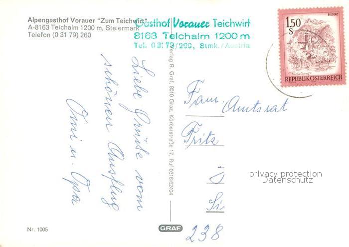 12943336 alte Postkarte Teichalm Alpengasthof Vorauer Zum Teichwirt postalisch gelaufen Erhaltung siehe scans [NatalD47] KatCode: 11390224061709