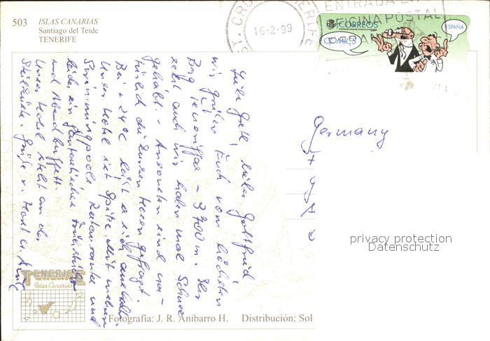 old postcard Teide (Berg) Santiago del Teide Fliegeraufnahme postalisch gelaufen Erhaltung siehe scans