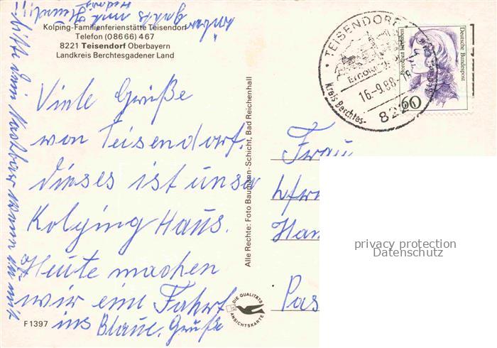 74027135 alte Postkarte Teisendorf Oberbayern Kolping-Familienferienstaette Speisesaal Ortsansicht mit Kirche Alpen postalisch gelaufen Erhaltung siehe scans [FriedD77] KatCode: 11110009172134