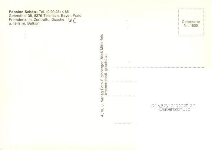 73650964 Teisnach Pension Schoetz postalisch nicht gelaufen Erhaltung siehe scans [WerneD78] KatCode: 11110009276143