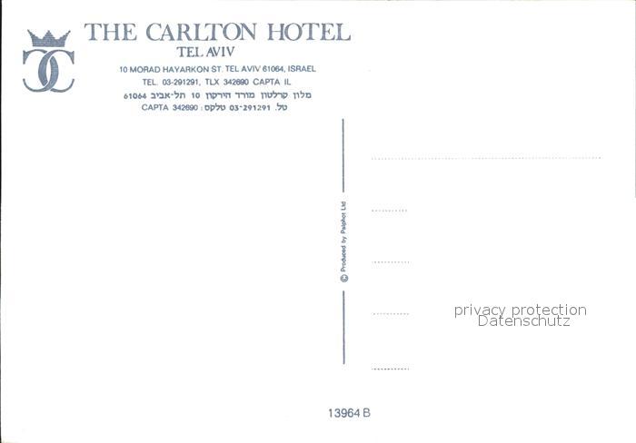 Tel Aviv Carlton Hotel postalisch nicht gelaufen Erhaltung siehe scans [NatalD47]
