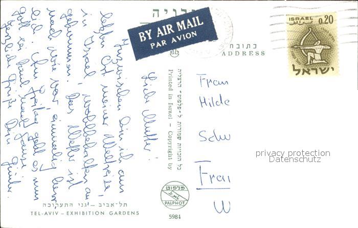 old postcard Tel Aviv Exhibition Gardens postalisch gelaufen Erhaltung siehe scans