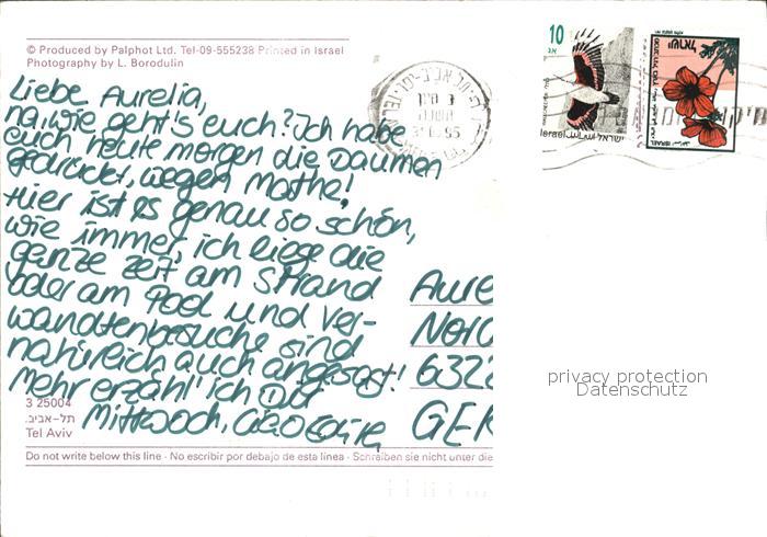 old postcard Tel Aviv Fliegeraufnahme postalisch gelaufen Erhaltung siehe scans