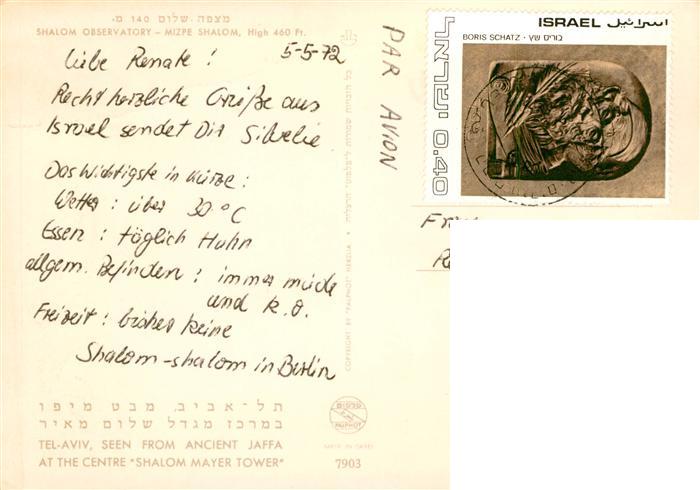 old postcard Tel-Aviv-Jaffa Israel seen from ancient Jaffa at the centre Shalom Mayer Tower postalisch gelaufen Fliegeraufnahme Erhaltung siehe scans [FriedD77]