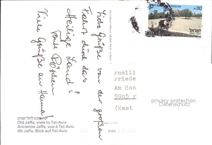 old postcard Tel Aviv Old Jaffa postalisch gelaufen Erhaltung siehe scans