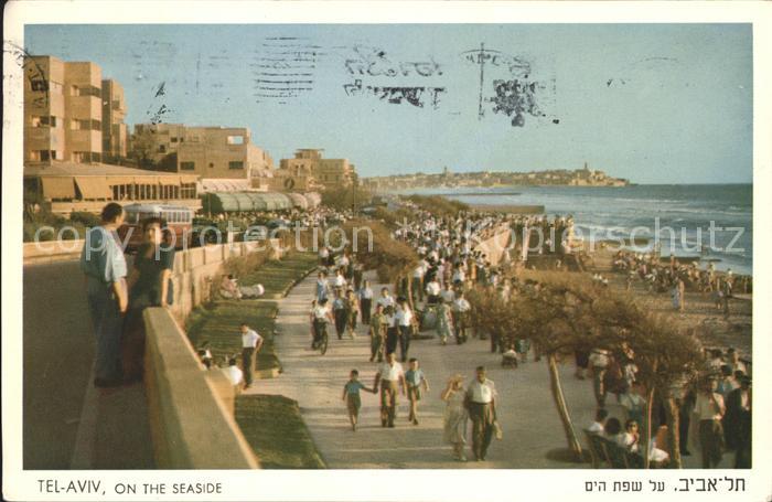 old postcard Tel Aviv On the seaside Promenade Beach postalisch gelaufen Erhaltung siehe scans