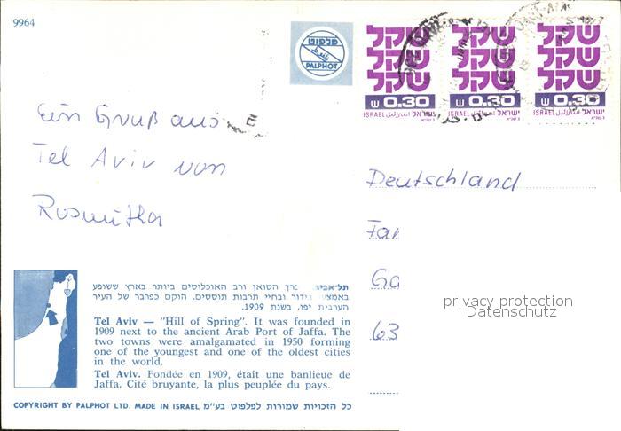old postcard Tel Aviv Stran Hochhaeuser Hill of Springs postalisch gelaufen Erhaltung siehe scans