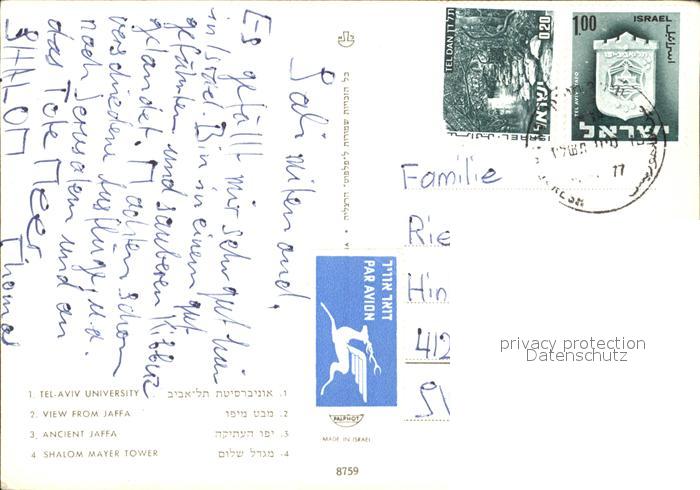 old postcard Tel Aviv University Jaffa Shalom Mayer Tower postalisch gelaufen Erhaltung siehe scans