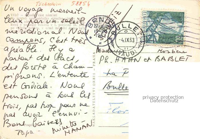 74008199 old postcard Telc Teltsch CZ Zapadni cast namesti postalisch gelaufen Erhaltung siehe scans [FriedD77] KatCode: 11520