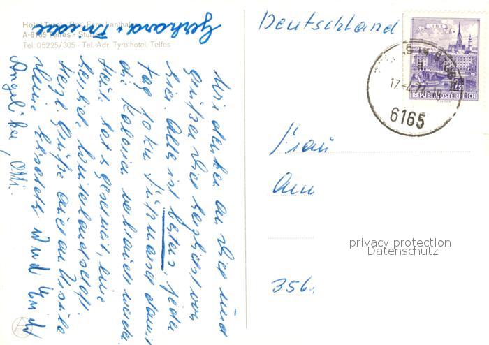 73592076 alte Postkarte Telfes Stubai Hotel Tyrol Treppe Gastraum Tanzbar postalisch gelaufen Erhaltung siehe scans [WerneD78] KatCode: 11390332070356