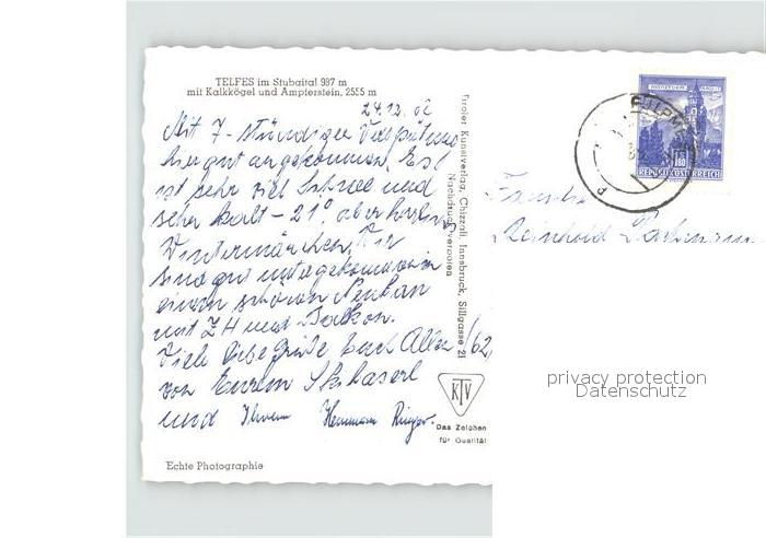 11931977 alte Postkarte Telfes Stubai mit Kalkk?gel und Ampferstein postalisch gelaufen Erhaltung siehe scans KatCode: 11390332070356
