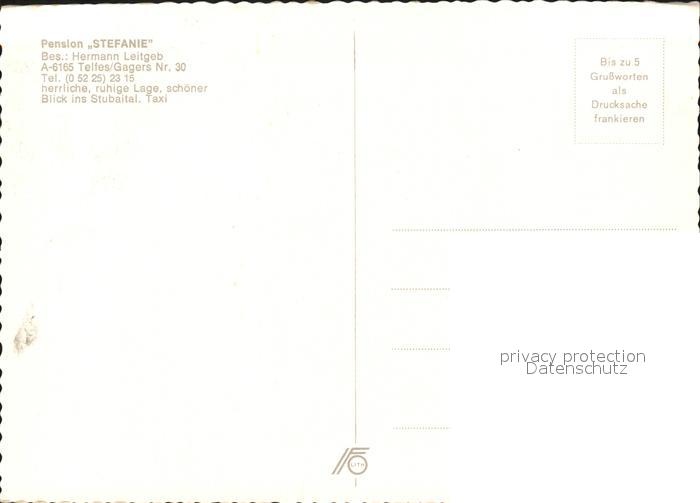 11923629 Telfes Stubai Pension Stefanie Terrasse Stube postalisch nicht gelaufen Erhaltung siehe scans KatCode: 11390332070356