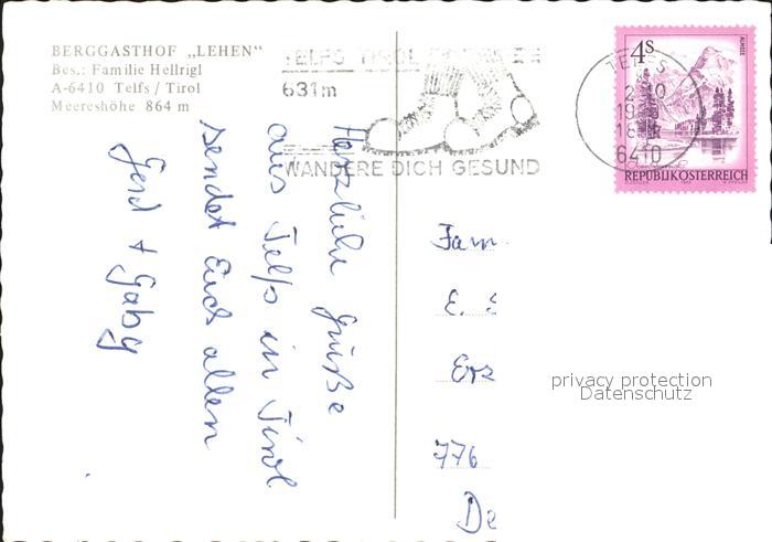 71986939 alte Postkarte Telfs Tirol Berggasthof Lehen postalisch gelaufen Erhaltung siehe scans KatCode: 11390332070101