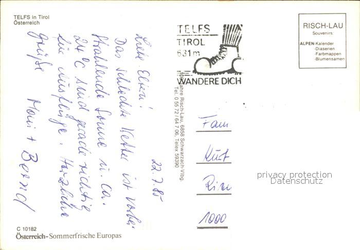 72443116 Telfs Tirol Hotel postalisch nicht gelaufen Erhaltung siehe scans KatCode: 11390332070101