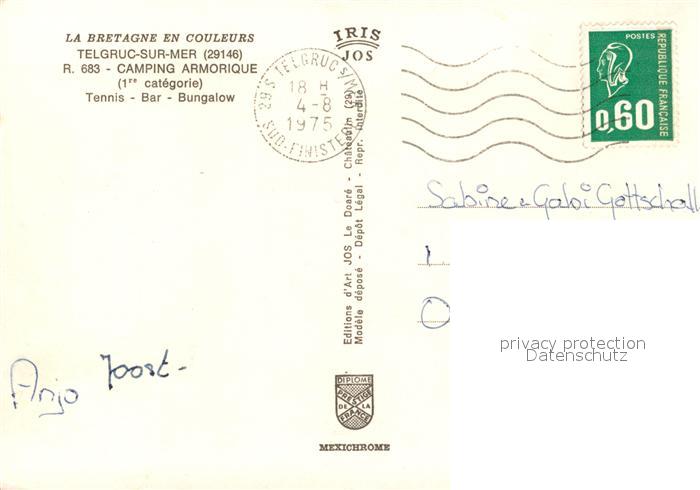 13374390 carte postale Telgruc-sur-Mer Camping Armorique Tennis Bungalows Panorama postalisch gelaufen Erhaltung siehe scans [FriedD77] KatCode: 11170029229280