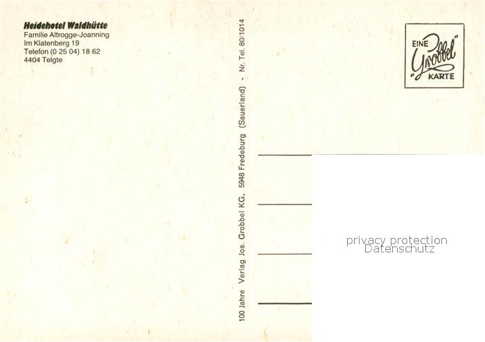 73197016 Telgte Peine Heidehotel Waldhuette postalisch nicht gelaufen Erhaltung siehe scans [KathaD81] KatCode: 11110003157006