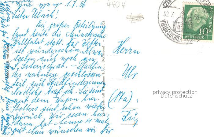 73700863 alte Postkarte Telgte Warendorf Ems Promenade mit Blick zur Kirche postalisch gelaufen Erhaltung siehe scans [FriedD77] KatCode: 11110005570044
