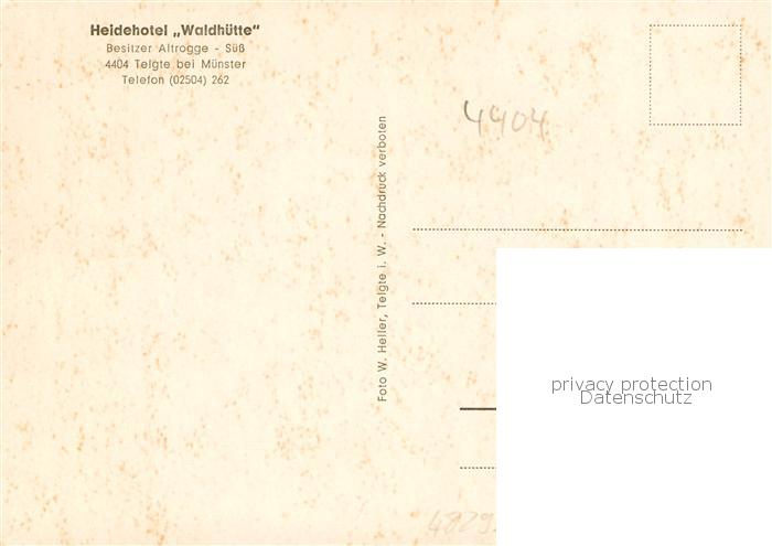 73845968 Telgte Warendorf Heidehotel Waldhuette Terrasse postalisch nicht gelaufen Erhaltung siehe scans [FriedD77] KatCode: 11110005570044