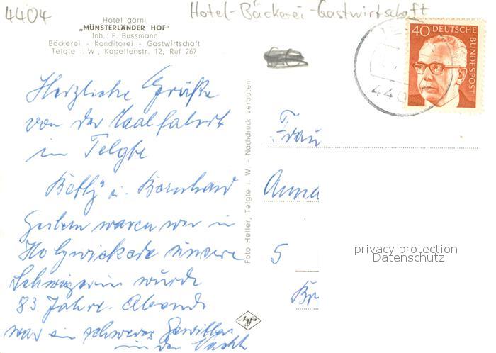 73700902 alte Postkarte Telgte Warendorf Hotel Muensterlaender Hof Restaurant postalisch gelaufen Erhaltung siehe scans [FriedD77] KatCode: 11110005570044