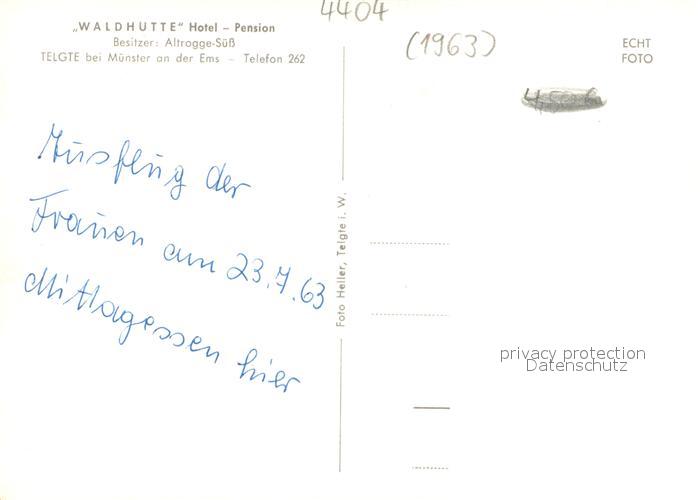 73700901 Telgte Warendorf Hotel Pension Waldhuette Gastraum Terrasse postalisch nicht gelaufen Erhaltung siehe scans [FriedD77] KatCode: 11110005570044
