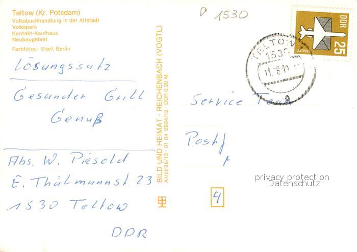 73124228 alte Postkarte Teltow Buchhandlung Altstadt Kaufhaus Neubaugebiet postalisch gelaufen Erhaltung siehe scans [LiesaD40] KatCode: 11110012069616