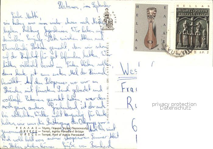 old postcard Tempe Tempetal Pont d Aghia Paraskevi Bruecke postalisch gelaufen Erhaltung siehe scans
