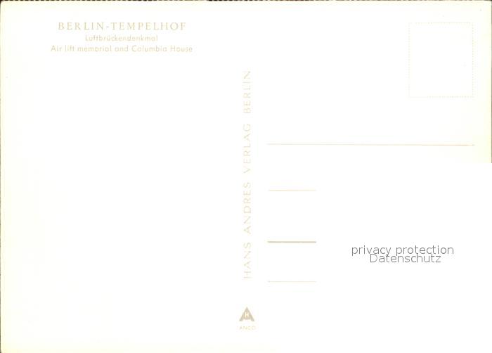 72308964 Tempelhof Berlin Luftbrueckendenkmal postalisch nicht gelaufen Erhaltung siehe scans KatCode: 11110011000000