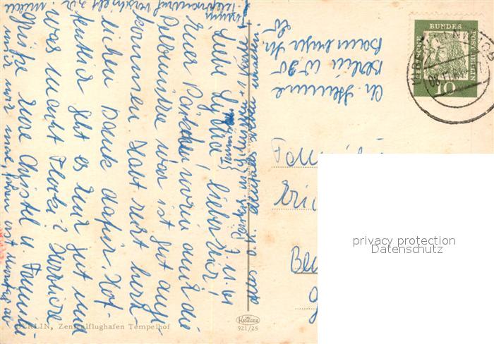43369000 alte Postkarte Tempelhof Berlin Zentralflughafen Passagierflugzeuge postalisch gelaufen Erhaltung siehe scans [FriedD77] KatCode: 11110011000000