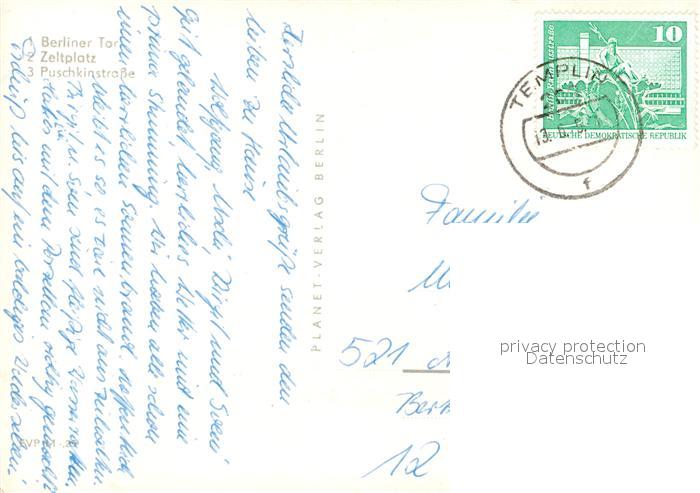 73600057 alte Postkarte Templin Berliner Tor Zeltplatz Puschkinstrasse postalisch gelaufen Erhaltung siehe scans [FriedD77] KatCode: 11110012073572