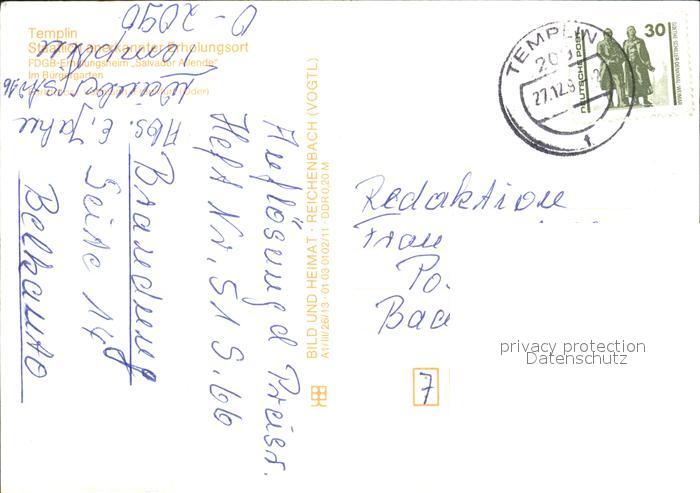 72455373 alte Postkarte Templin Buergergarten postalisch gelaufen Erhaltung siehe scans KatCode: 11110012073572