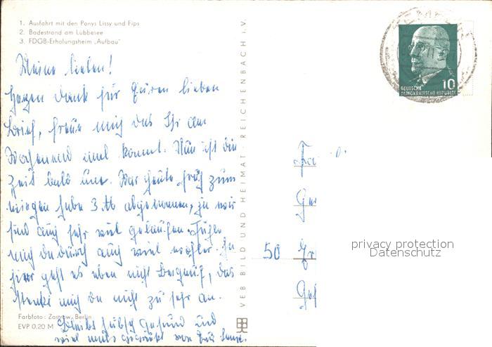 72348281 alte Postkarte Templin FDGB-Erholungsheim Aufbau Ausfahrt Ponys Lissy Fips postalisch gelaufen Erhaltung siehe scans KatCode: 11110012073572