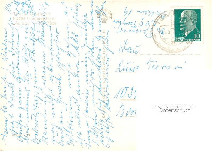 73723015 alte Postkarte Templin FDGB Erholungsheim Aufbau Milchbar postalisch gelaufen Erhaltung siehe scans [WerneD78] KatCode: 11110012073572