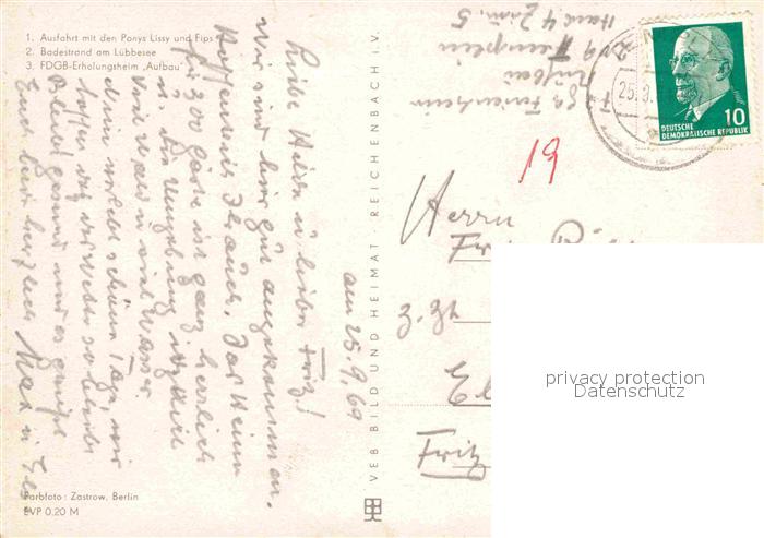 72798853 alte Postkarte Templin FDGB Erholungsheim Aufbau Ponykutsche Badestrand postalisch gelaufen Erhaltung siehe scans [FriedD77] KatCode: 11110012073572