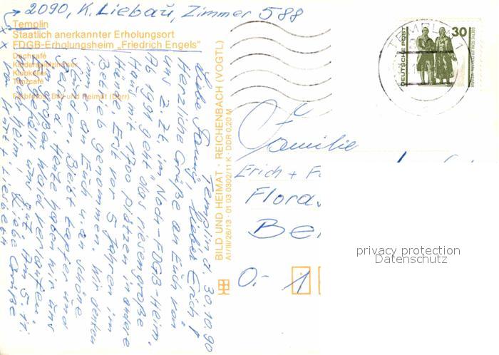 72727194 alte Postkarte Templin FDGB Erholungsheim Friedrich Engels Cafe Kinderspielzimmer Klubraum Tanzcafe postalisch gelaufen Erhaltung siehe scans [FriedD77] KatCode: 11110012073572